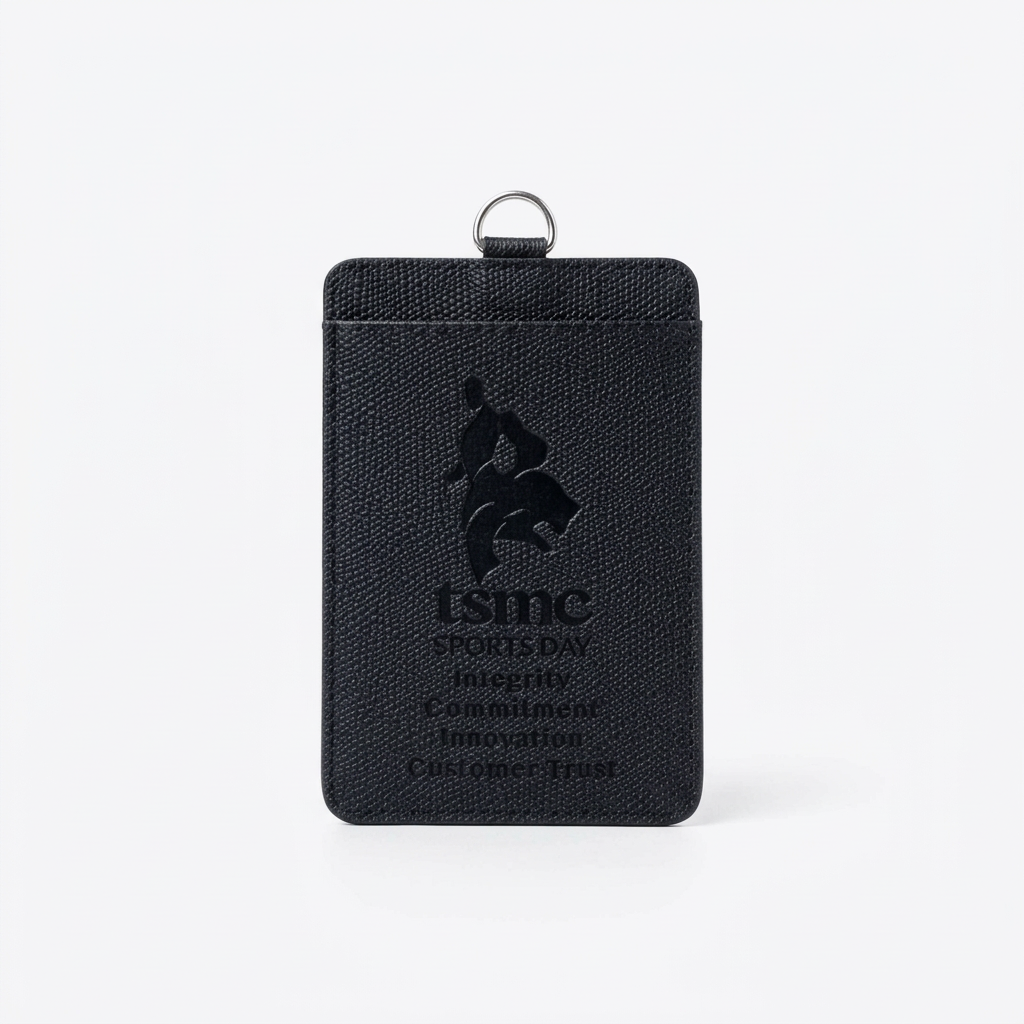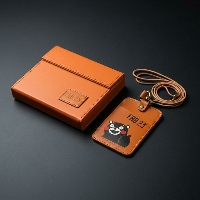 為全球半導體龍頭熊本廠開廠打造專屬識別證套。嚴選質感活力橘真皮革,結合俏皮黑熊吉祥物與 FAB 23 壓紋,搭配訂製手工紙盒,為跨國同仁獻上極致的企業歸屬感。