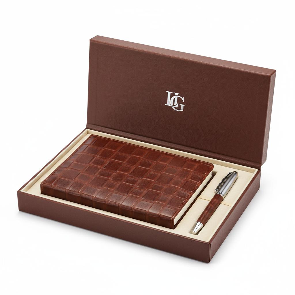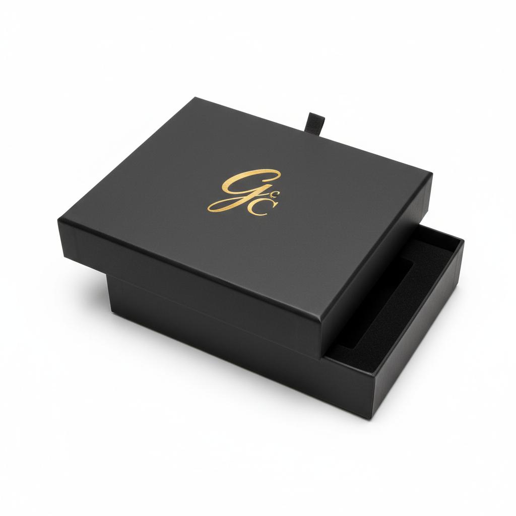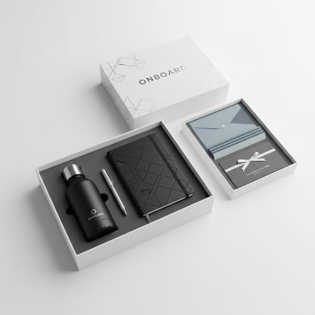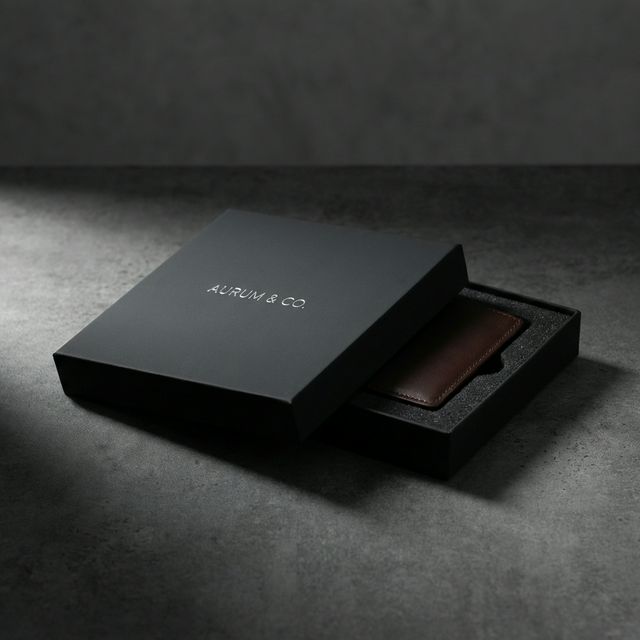 極致低調的霧黑訂製包裝,內含手工訂製鋼筆與皮革名片夾,完美延伸了私人金融機構的頂級品牌形象。